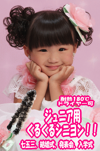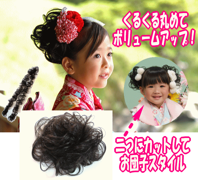 ジュニアお勧め(子供用)ドレスアップの定番、耐熱(180度)ジュニア用くるくるシニヨン(ロープウィッグ)【メール便可】七五三ウィッグ 七五三つけ毛 子供つけ毛 子供ウィッグ キッズウィッグ